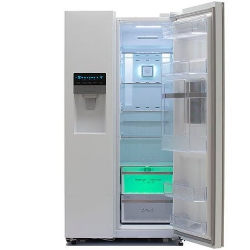 ظاهر شکیل با رنگ سفید متالیک براق، دستگیرههای مخفی و پنل نمایشگر لمسی LED، ظاهری لوکس و یکدست به این مدل بخشیدهاند. طراحی SBS به شما اجازه میدهد بدون باز کردن کامل دربها، به بخشهای مختلف دسترسی داشته باشید. درب سوم با عنوان Platinum Zone نیز به عنوان بار خانگی در نظر گرفته شده تا مصرف انرژی کاهش یابد و دسترسی سریعتری به اقلام پرمصرف داشته باشید.